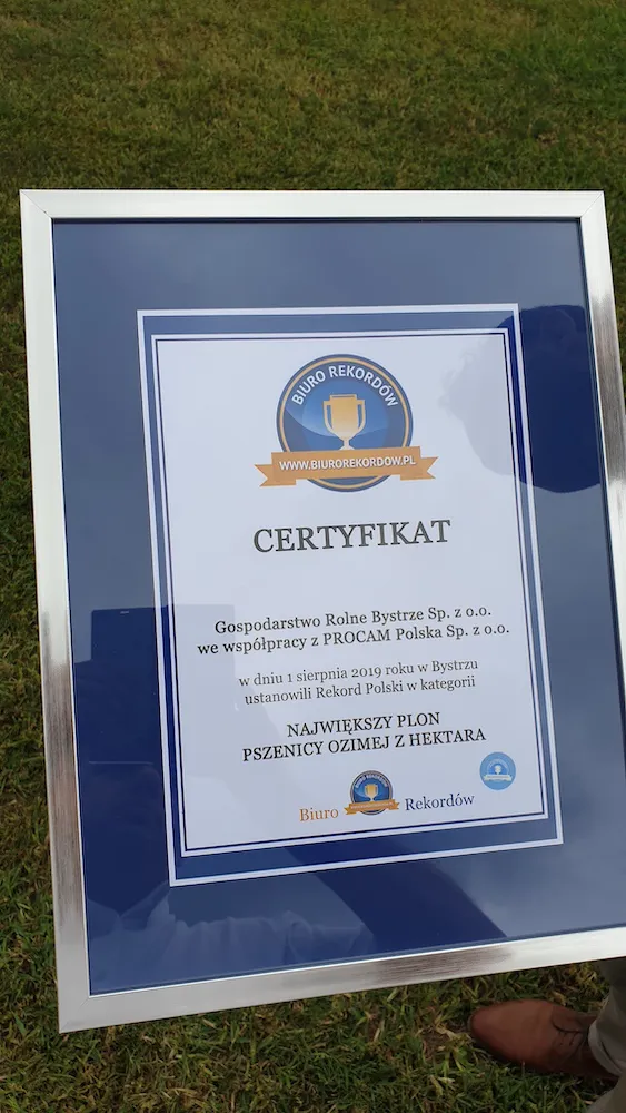 Poznaj szczegóły aktualnego Rekordu Polski z 2020 roku w kategorii PSZENICA z wynikiem 12,567 t/ha. Rekordowe plony zebrano na odmianie Argument dzięki technologii PROCAM. Dowiedz się więcej o nawozach i środkach ochrony roślin PROCAM, które pozwoliły na osiągnięcie wyjątkowych wyników.