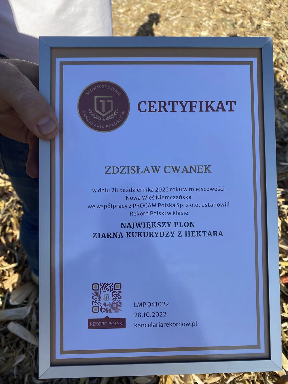 Uczestnik rozgrywek w kategorii Największy Plon Kukurydzy na ziarno z hektara z wynikiem 17,7 t/ha przy wilgotności 14% nasion kukurydzy odmiany Citadel. Wysokie plony zebrano dzięki technologii PROCAM.
