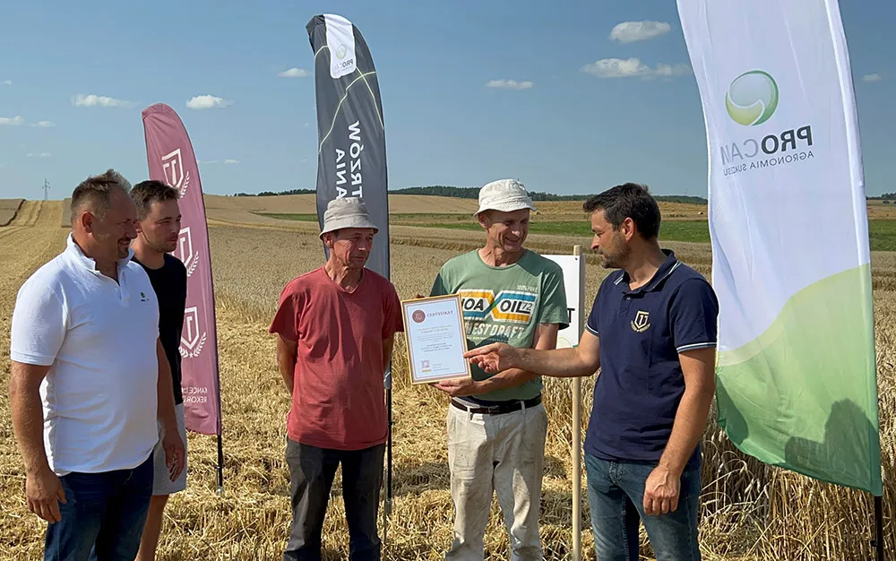 W dniu 08 sierpnia 2022 roku ustanowiono Rekord Województwa Pomorskiego w klasie NAJWIĘKSZY PLON PSZENICY OZIMEJ Z HEKTARA UZYSKANY W 2022 ROKU. Zebrany plon wyniósł 10,581 t/ha nasion pszenicy ozimej odmiany FINDUS. Dowiedz się więcej o nawozach i środkach ochrony roślin PROCAM, które pozwoliły na osiągnięcie wyjątkowych wyników.