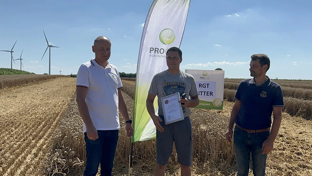 Uczestnik rozgrywek w kategorii PSZENICA z wynikiem 10,173 t/ha. Wysokie plony zebrano dzięki technologii PAKIET ZBOŻA od PROCAM.