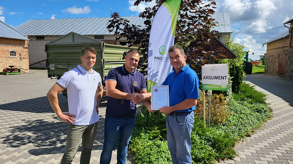 W dniu 04 sierpnia 2022 roku ustanowiono Rekord Województwa Opolskiego w klasie NAJWIĘKSZY PLON PSZENICY OZIMEJ Z HEKTARA UZYSKANY W 2022 ROKU. Zebrany plon wyniósł 10,636 t/ha nasion pszenicy ozimej odmiany ARGUMENT. Dowiedz się więcej o nawozach i środkach ochrony roślin PROCAM, które pozwoliły na osiągnięcie wyjątkowych wyników.
