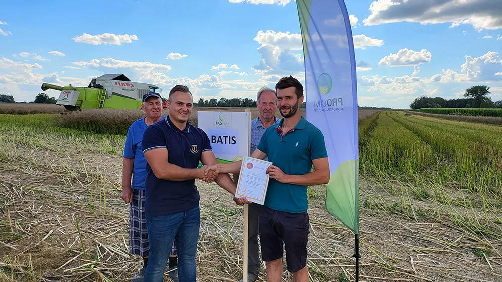 Uczestnik rozgrywek w kategorii RZEPAK z wynikiem 5,665 t/ha. Wysokie plony odmiany BATIS zebrano dzięki technologii PROCAM.