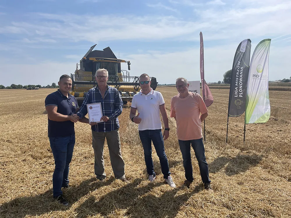 Zbiór odbył się pod nadzorem przedstawicieli Kancelarii Rekordów – uzyskano plon 10,819 t/ha stał się tym samym aktualnym rekordem województwa pomorskiego.